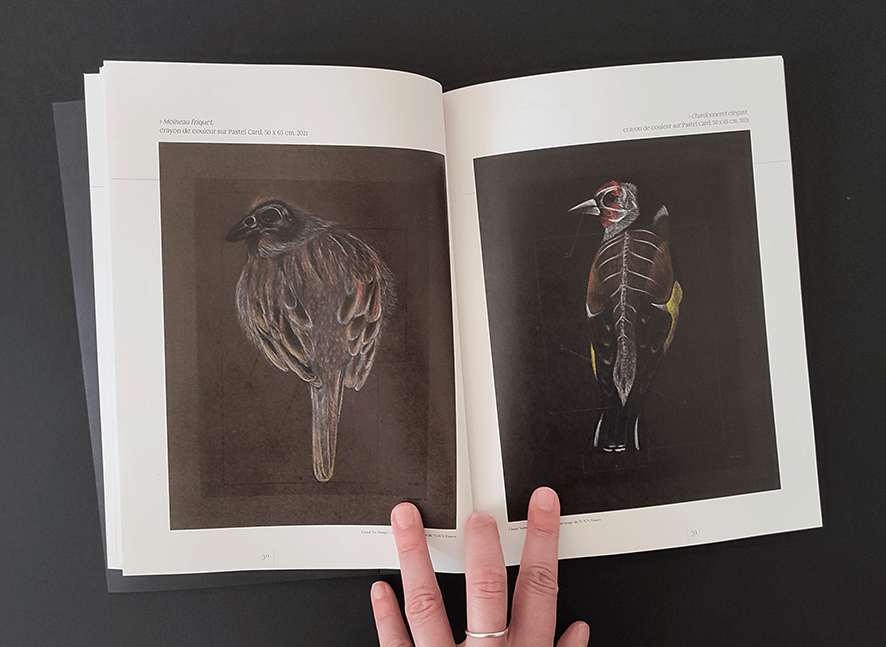 Extinction rassemble des séries d’illustrations naturalistes. J’invite le regardeur à recréer une narration disparue pour penser notre relation au vivant et se figurer la disparition annoncée d’une partie des animaux. Plus largement, je souhaite questionner notre rapport aux non-humains, aux savoirs, à la mémoire et à la vérité.