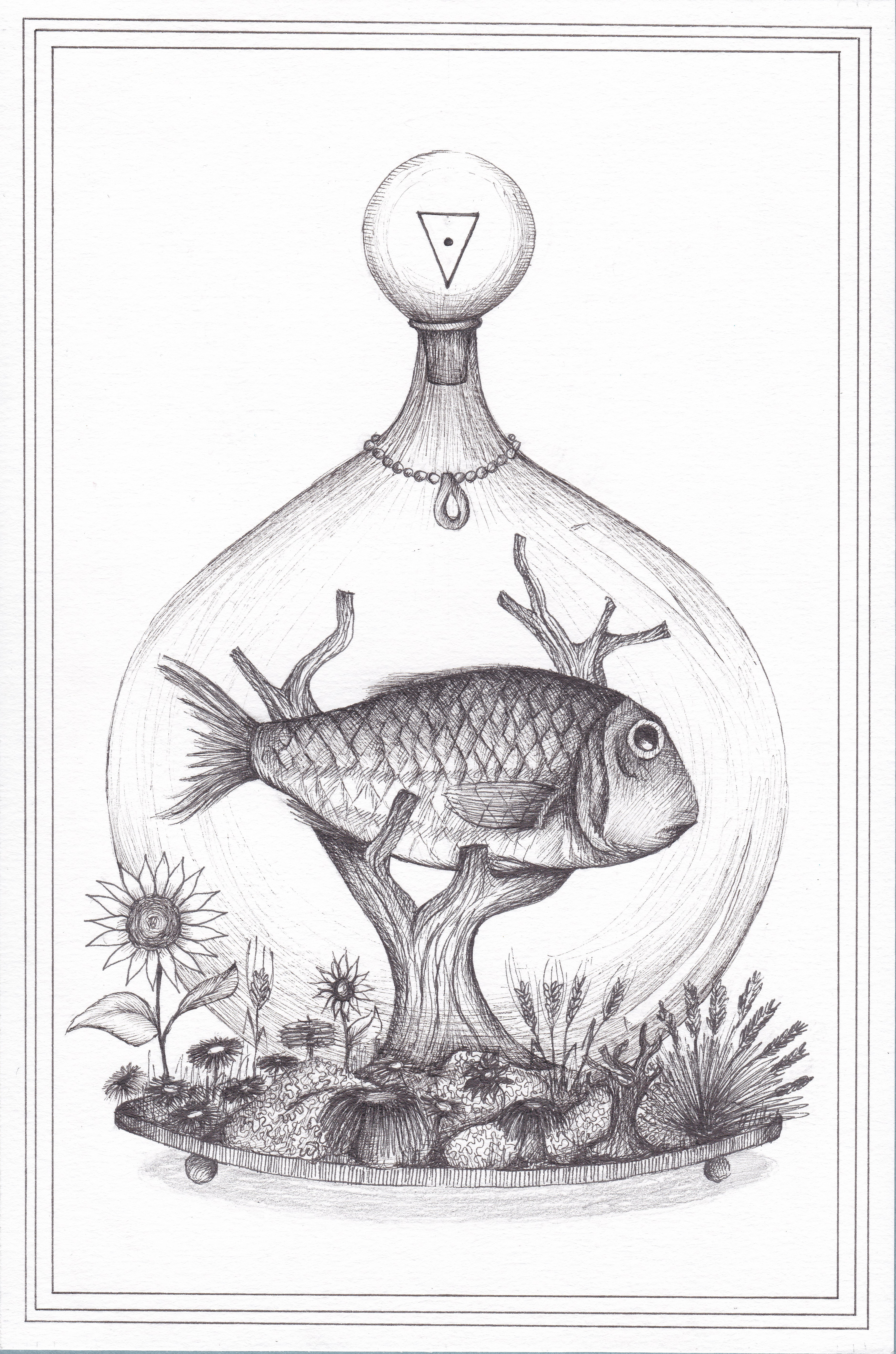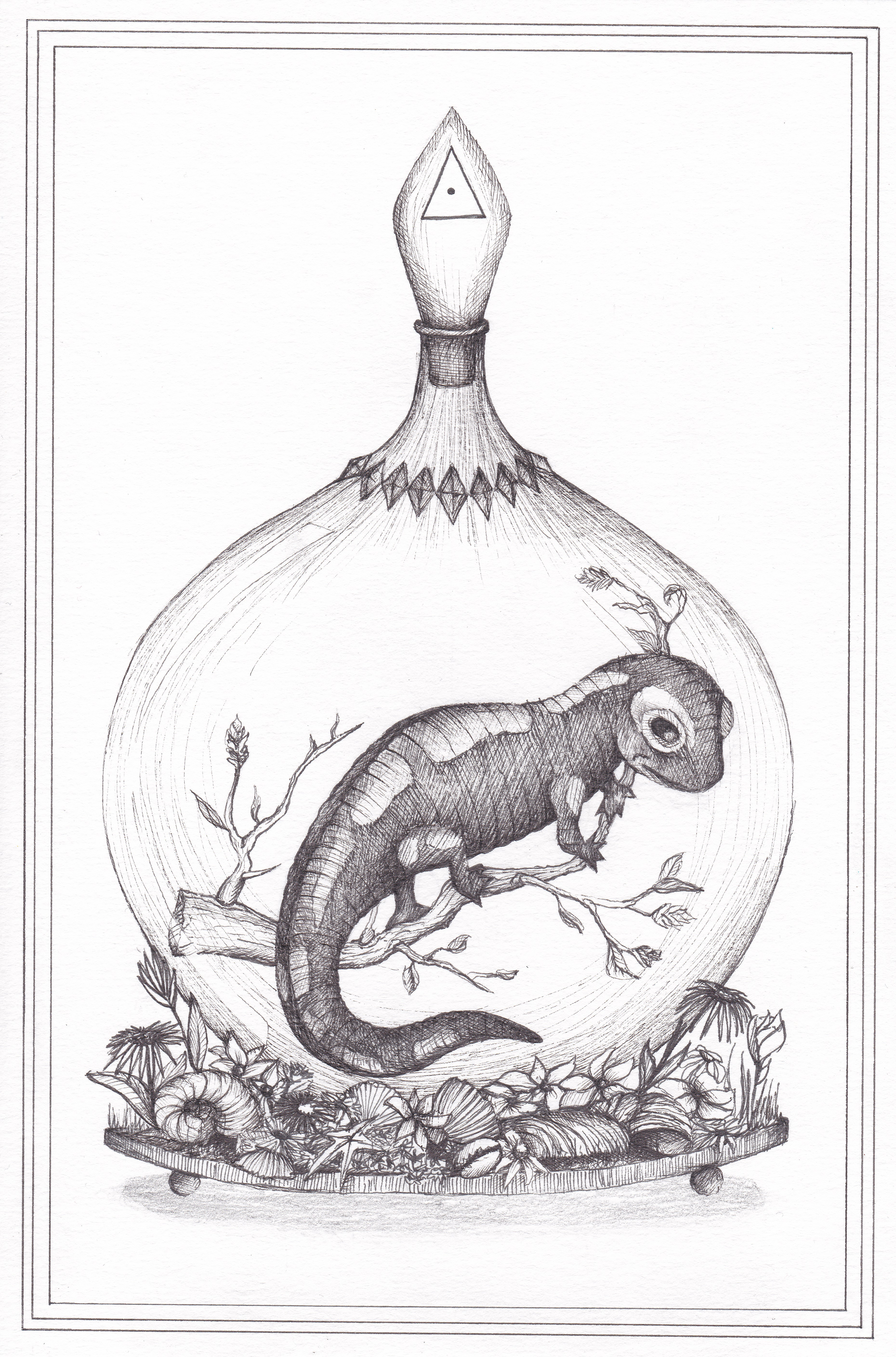 Les symboles sur les bouchons sont les symboles alchimistes de ces 4 aspects. Cette série fait référence à l’œuvre de Frederik Ruysch, médecin et anatomiste néerlandais du XVIIe siècle. Je vous invite à aller voir ses œuvres et sa biographie.